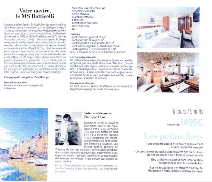 - visites guidées des musées Marmottan et Orsay à Paris, du musée Caillebotte à Yerres et du musée Malraux au Havre et du jardin de Giverny.